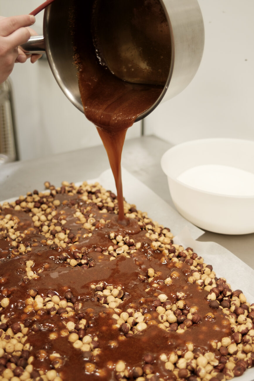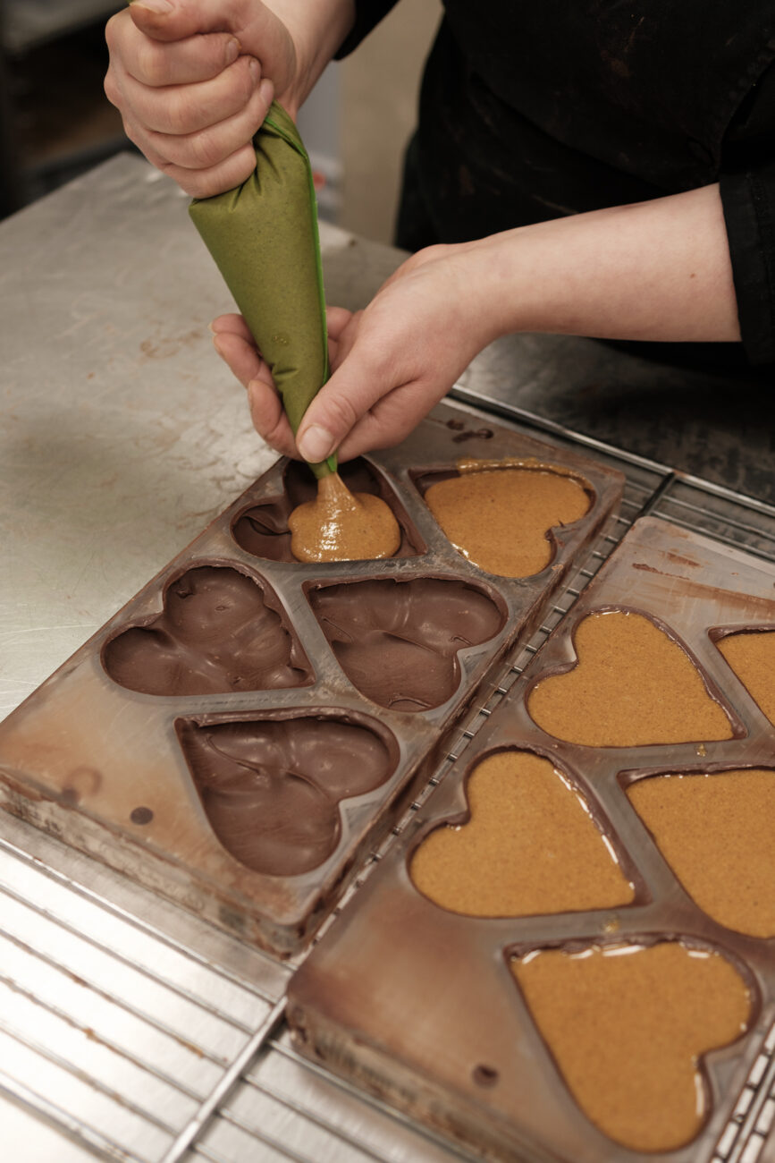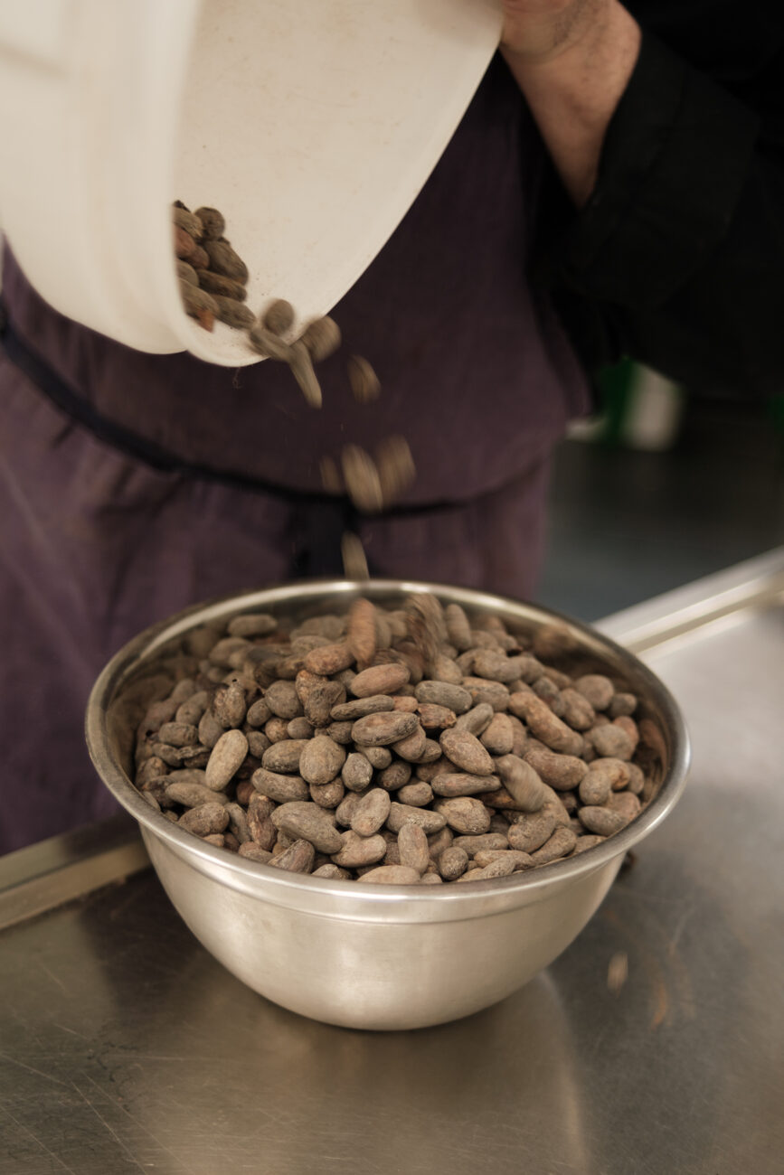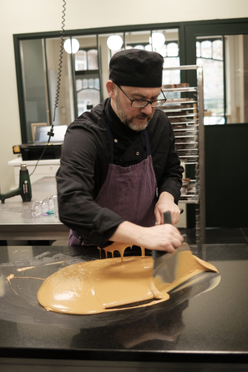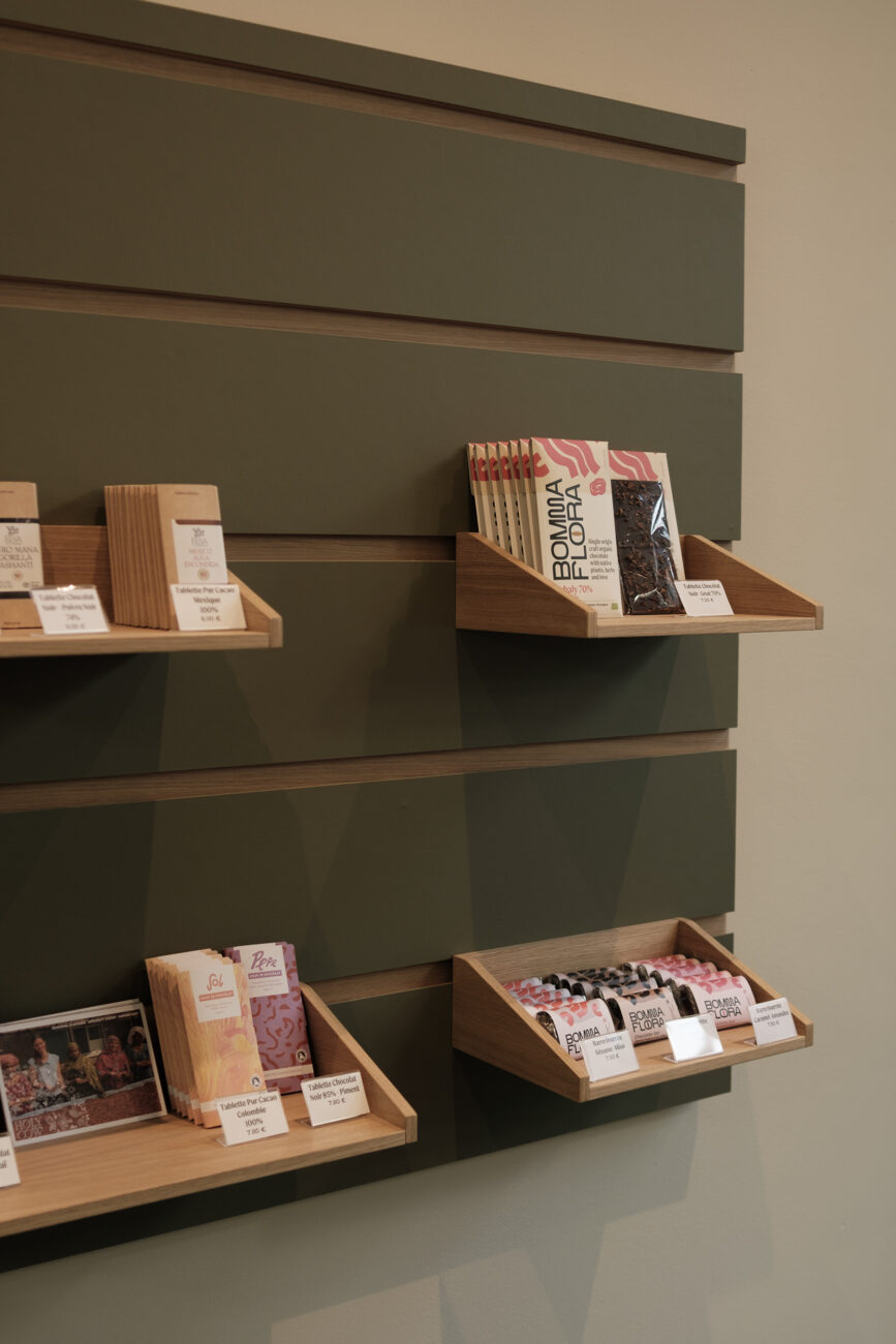 Une nouvelle étape est franchie fin 2025 avec l’ouverture d’un magasin-atelier à Saint-Gilles. Il s’associe alors à Léo Netter, jeune diplômé en chocolaterie ayant rejoint l’aventure Bomma Flora à l’occasion d’un stage. Ensemble, ils développent une véritable éthique du goût : travailler exclusivement avec des fèves du Nicaragua, limiter le sucre et privilégier les circuits courts pour les autres matières premières. Pour apporter une touche originale à leurs pralines, ils utilisent notamment des plantes poussant naturellement en Europe, telles que la lavande, la nèfle, la mélisse ou l’estragon. Dans ce magasin épuré, vous trouverez également des tablettes « bean-to-bar » réalisées par d’autres chocolatiers belges.