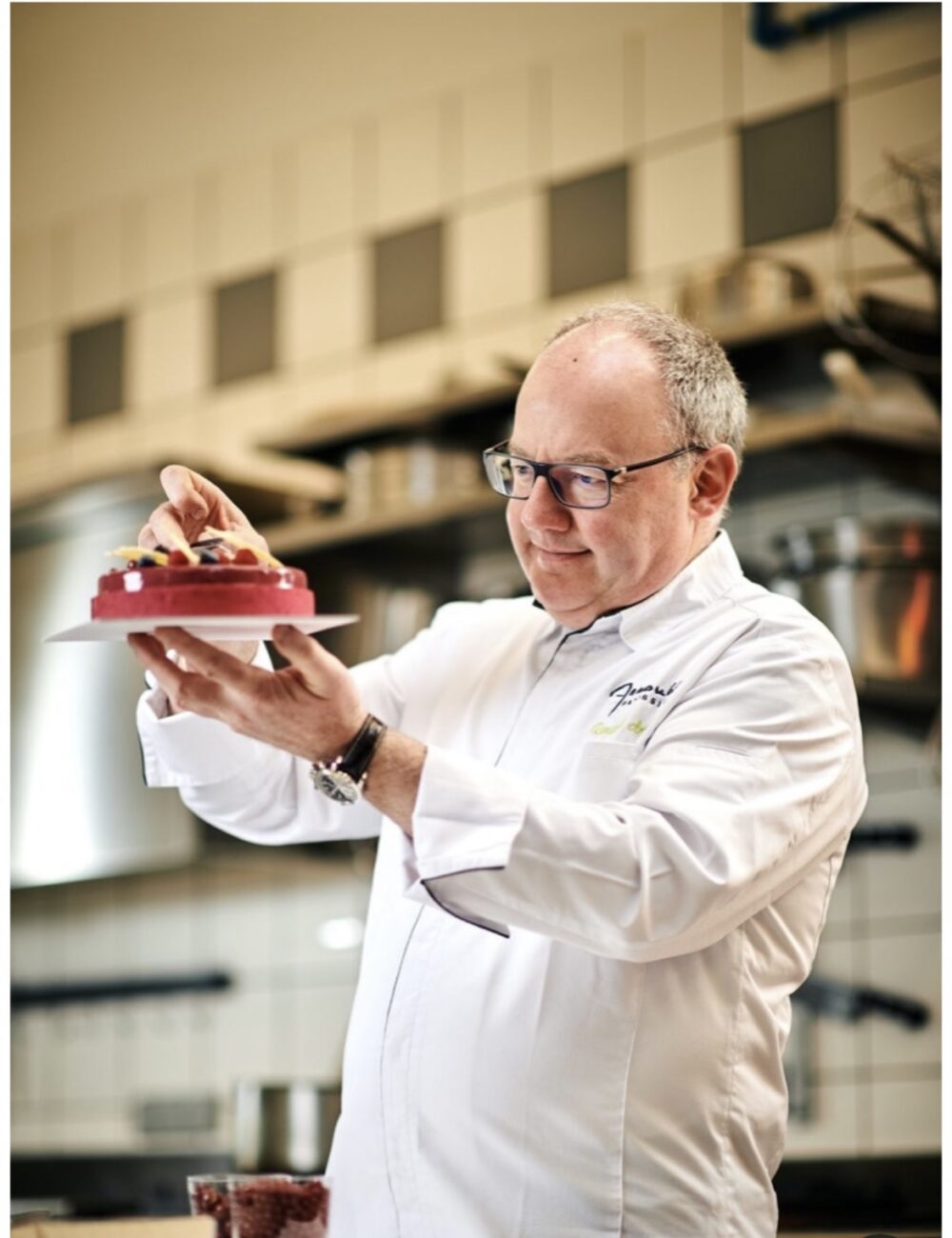 C’est sur la place du marché, à deux pas de la maison communale de Saint-Hubert, que Renauld Arnould a installé sa pâtisserie en 1996. Depuis, nul doute que son établissement est devenu un véritable point de ralliement pour les gourmands de la région, qu’ils soient habitués ou simples touristes séduits par ce coin de nature giboyeux. Dans la vitrine, les nouveaux trompe-l’œil en forme de fruits rencontrent un franc succès. “J’ai récemment suivi une formation spécifique à Bruxelles pour apprendre à les réaliser”, explique Renauld Arnould. “Pour moi, une pâtisserie séduit d’abord par le visuel, auquel j’attache une importance capitale. Ensuite, je travaille énormément sur le goût, notamment en recherchant le juste dosage en sucre afin de ne pas masquer les saveurs. Dans le cas des trompe-l’œil, je veux que l’on retrouve véritablement la sensation du fruit.”