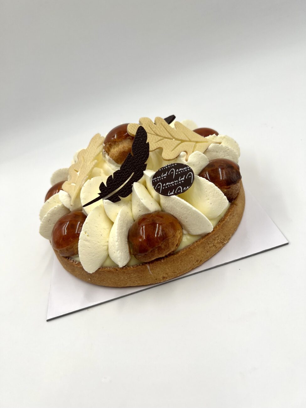 En ce début septembre, la gamme propose la framboise, le citron, la pomme et la poire. Nous avons pu goûter cette dernière – composée d’un biscuit madeleine, d’un streusel aux amandes, d’une mousse à la poire, d’un insert de compotée et d’un crémeux à la poire vanillée – un pur délice ! La vitrine se complète de tartes et d’entremets plus classiques, toujours raffinés et décorés avec sobriété. L’atelier produit également des pains, dont certains au levain maison, ainsi que des glaces et quelques pralines.