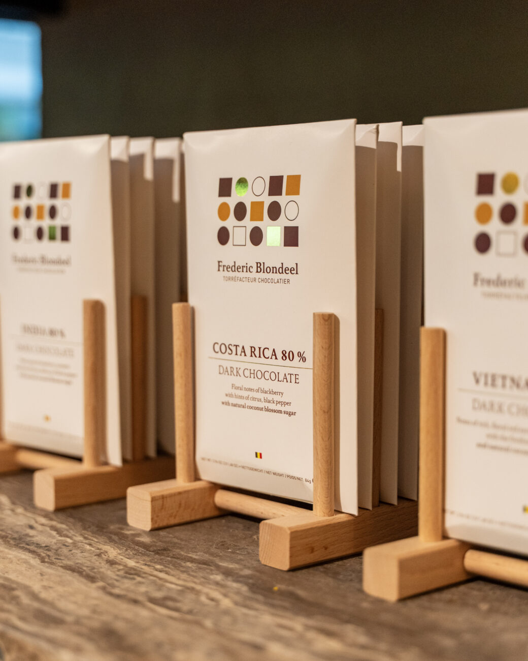 Actif depuis plus de trente ans dans le monde de la chocolaterie, Frédéric Blondeel n’a jamais dérogé à son principe fondateur : privilégier la traçabilité et la qualité des produits. Après avoir géré trois boutiques, il recentre son activité en 2017 avec l’ouverture d’un vaste atelier, magasin et salon de thé situé à Koekelberg, au nord de Bruxelles. Frédéric Blondeel est surtout connu pour être l’un des pionniers en Belgique du mouvement bean-to-bar, qui consiste à produire du chocolat à partir de la fève de cacao.