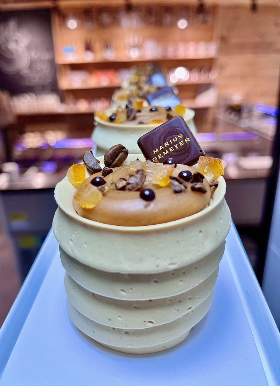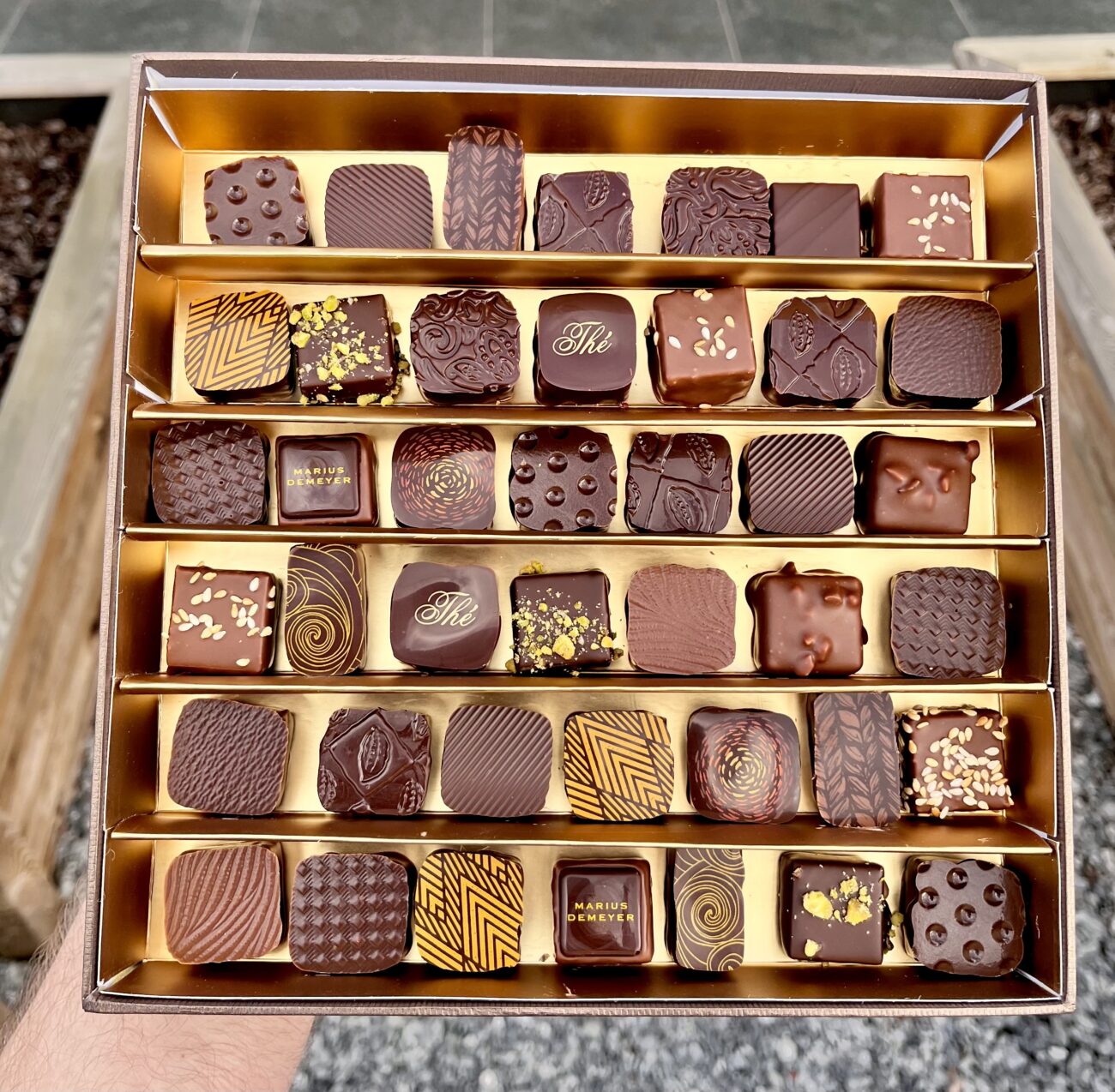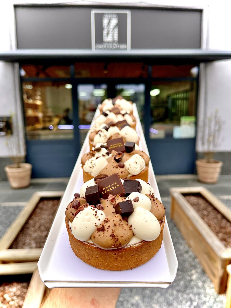 Seul en production, il réalise des pralines, des glaces et de délicieuses pâtisseries. Le jour de notre visite, nous testons une tartelette pécan vanille. La première chose qui frappe, c’est la fraîcheur du produit. La pâte sablée est croustillante. Vient ensuite la douceur de la crème vanille, mêlée à la profondeur de la ganache chocolat au lait. Ensuite on sent la force du praliné pécan et le croustillant des noix de pécan caramélisées, le tout relevé d’une pointe de sel. “J’aime les goûts francs et je baisse le sucre partout pour avoir un meilleur équilibre en goût”, explique ce passionné. Sachez que Marius Demeyer réalise tout sur place et utilise des matières premières de qualité, certifiées bio. Son père, également certifié bio, le fournit en pain au levain.