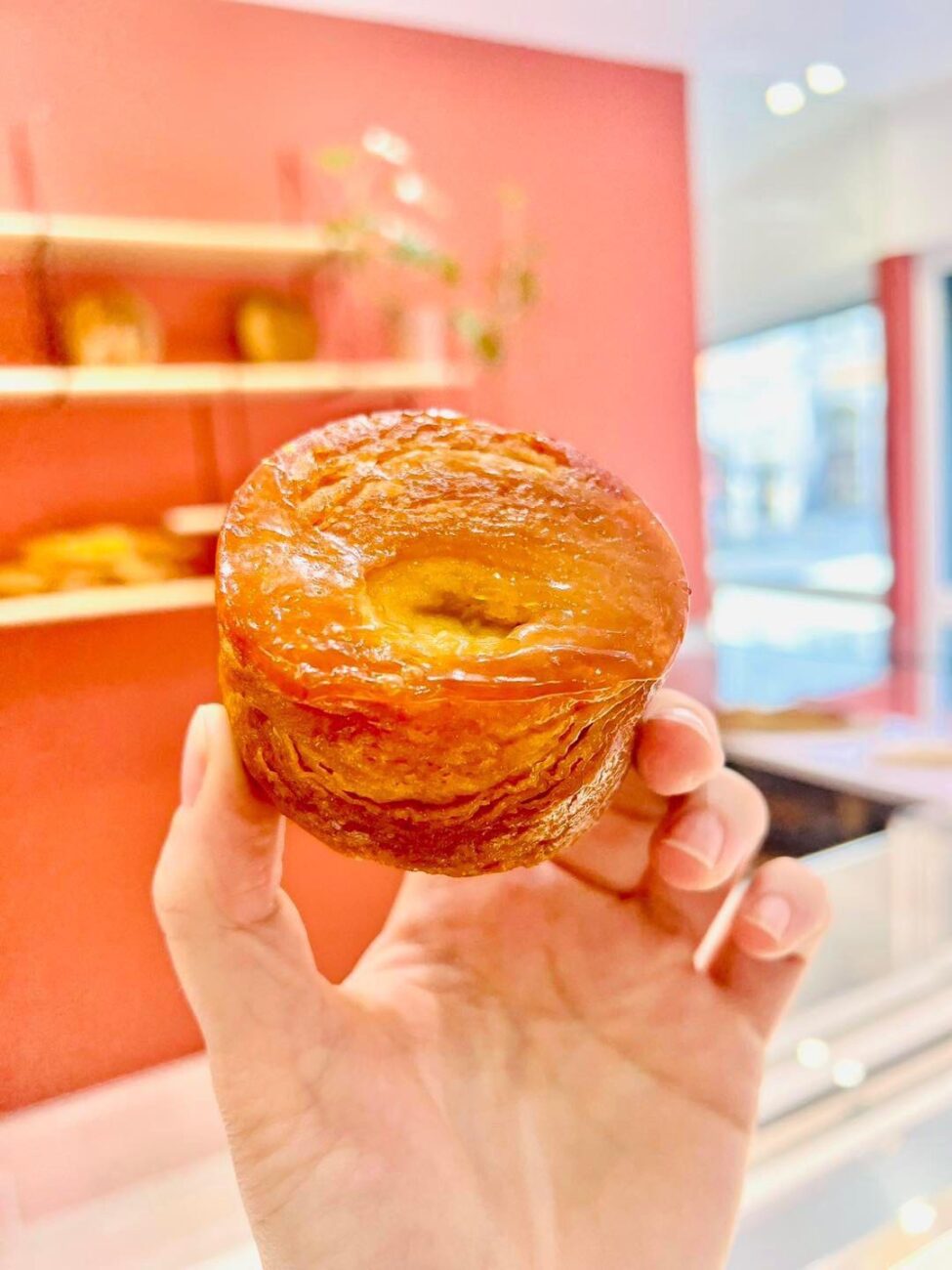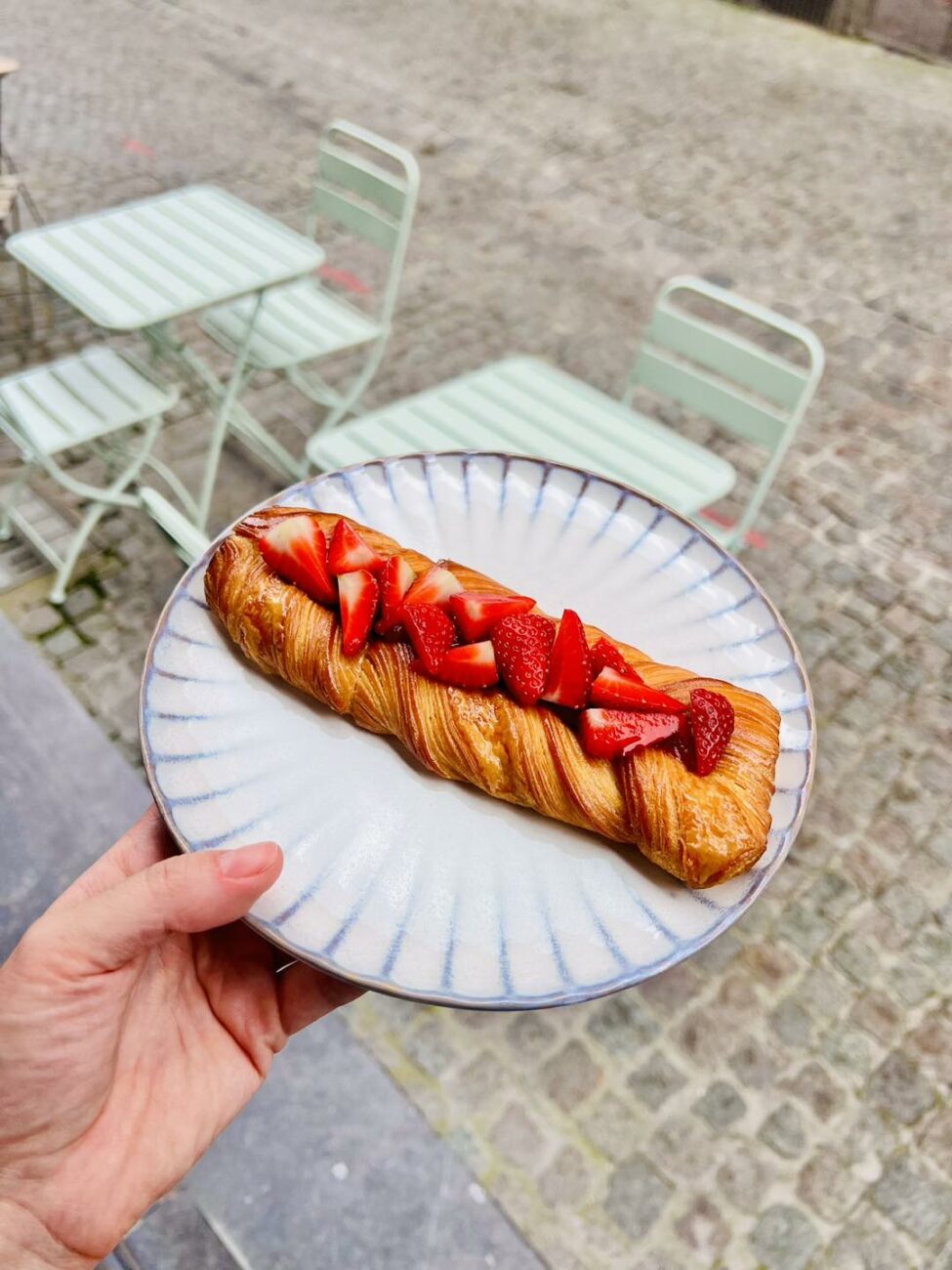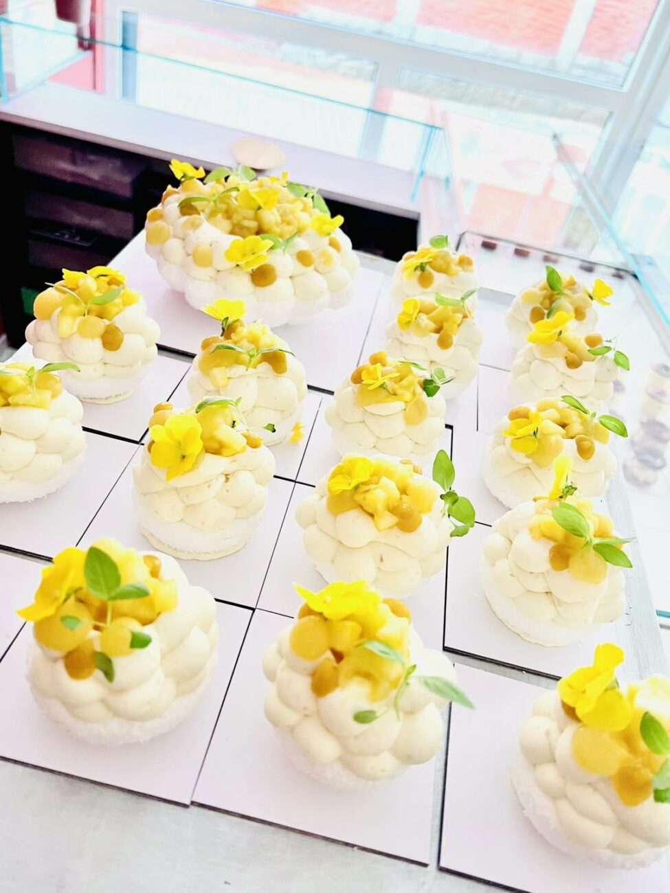 L’année 2025 restera spéciale pour Melissa, puisqu’elle est désormais seule aux commandes, son compagnon officiant à temps plein dans un établissement gastronomique bruxellois. Tous les mois et demi, la vitrine change. « Nous avons des habitués qui goûtent toutes les pâtisseries au gré de leurs visites sur la période », s’amuse Melissa. “Chaque pâtisserie fait l’objet de tests pour mettre au point le bon équilibre.” La tartelette tout café que nous avons dégustée fait honneur à sa créatrice : peu sucrée, croustillante, avec une saveur florale et fruitée. De quoi miauler de plaisir…
