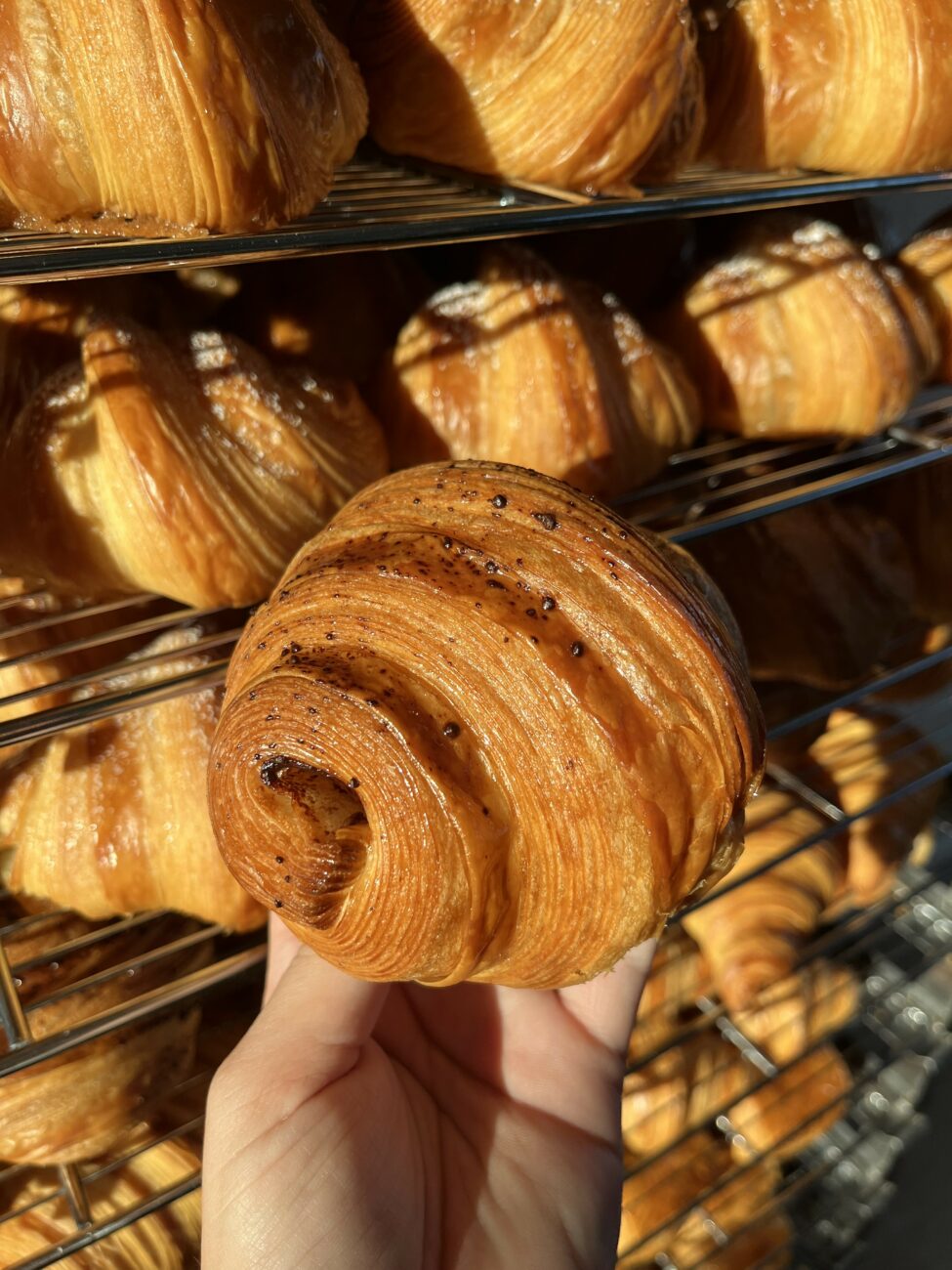 Aujourd’hui, chacun trouve naturellement sa place : Florian dirige l’atelier de pâtisserie, Thibault se consacre aux viennoiseries et aux tartes, tandis que Mégane gère la boutique et l’administration. Plus récemment, l’équipe s’est enrichie avec l’arrivée de Renaud Nys, chargé de développer l’offre salée. Les spécialités et créations originales sont nombreuses. Parmi elles, le rocher : une mousse au chocolat fondant, une crème brûlée à la vanille de Madagascar, un caramel au beurre salé et un biscuit croquant. Cerise sur le gâteau, les clients peuvent déguster ces douceurs dans un salon de thé moderne et lumineux.